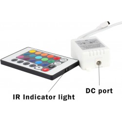 Es un control remoto RGB para tiras LED o luces LED multicolor. Permite ajustar color, brillo y efectos de iluminación de forma inalámbrica y es ideal para iluminación decorativa, de interiores o proyectos electrónicos.