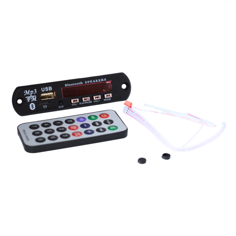 Con módulo receptor de audio bluetooth, cuando el teléfono celular y la conexión del módulo bluetooth coinciden, los archivos MP3 o APE serán enviados a través de bluetooth, reproduce archivos MP3 o tarjeta TF, así como la transmisión de radio.