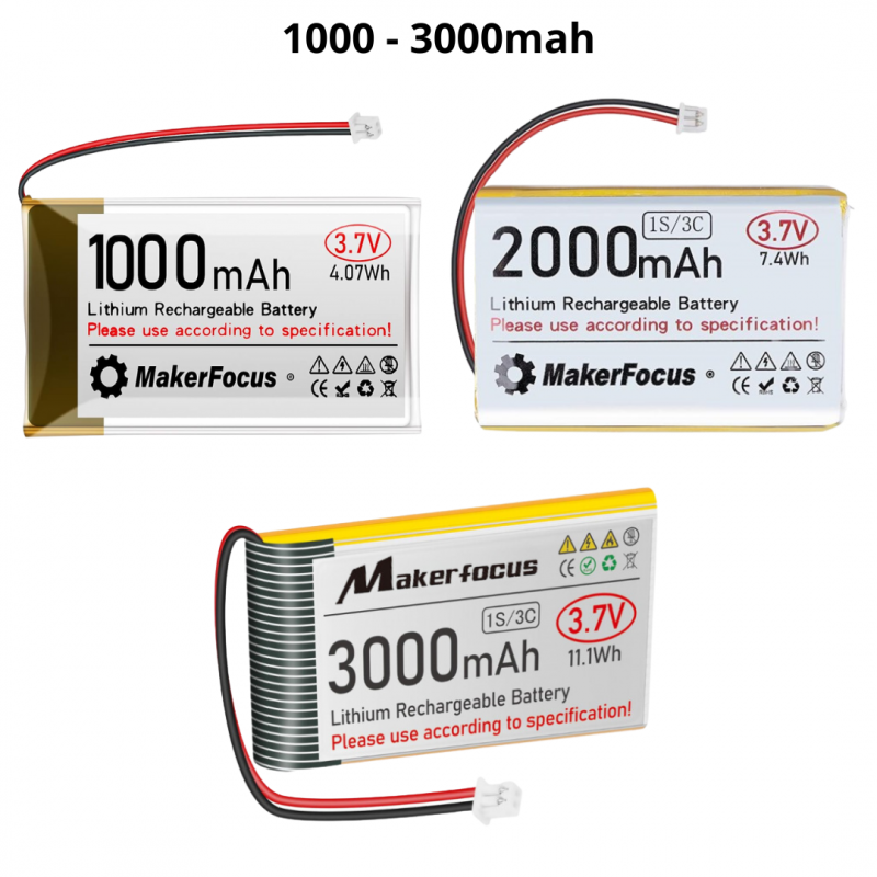 Capacidad: 3000mAh (miliamperios-hora), lo que indica la cantidad de energía que la batería puede almacenar y proporcionar, ideal para aplicaciones que requieren mayor duración.
