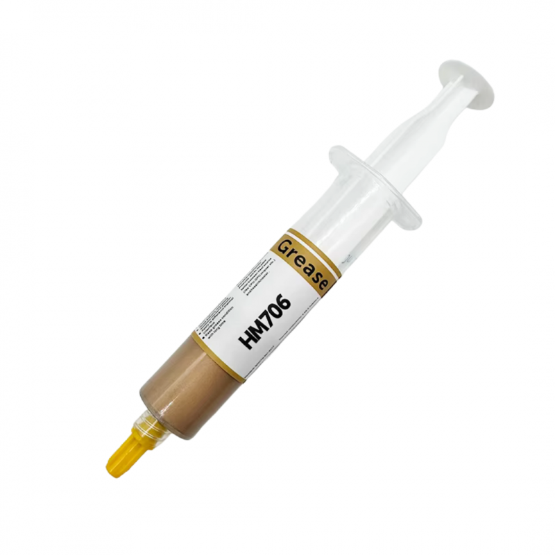 La pasta térmica dorada HM706 es un compuesto de silicona conductora de calor utilizado para mejorar la transferencia térmica entre superficies que generan calor (como procesadores, transistores o chips) y sus disipadores. Su función principal es rellenar las microimperfecciones entre ambas superficies para lograr una mejor disipación del calor y evitar sobrecalentamientos.