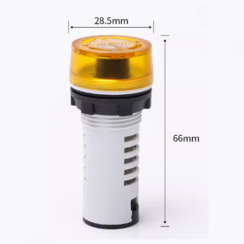 Es un dispositivo de señalización acústica y visual. Combina un buzzer (zumbador) que emite un sonido de advertencia con una luz piloto intermitente, utilizada para alertar sobre fallos, alarmas o estados operativos de una máquina o sistema.