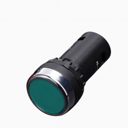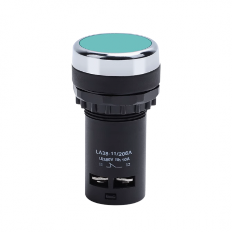 Es un botón pulsador momentáneo de tipo industrial, diseñado para el montaje en tableros o cajas de control con orificios de 22 mm de diámetro. Al presionarse, cambia el estado de sus contactos (abre o cierra el circuito) y al soltarlo, vuelve automáticamente a su posición original (auto-reajuste).
