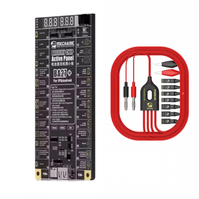 El Mechanic BA27 es una herramienta esencial para técnicos de reparación de celulares: permite reactivar baterías que ya no cargan con cargadores convencionales, diagnosticar su estado y cargarlas de forma segura. Gracias a su diseño inteligente, reconoce automáticamente la batería conectada, regula la corriente de salida y protege frente a sobrecargas. Su pantalla LED muestra el voltaje y la corriente en tiempo real, lo que facilita un análisis preciso. Además, soporta múltiples interfaces de conexión: USB-C, pinzas tipo cocodrilo y más. Compatible con cientos de modelos de Android y versiones de iPhone (incluyendo modelos recientes). Este dispositivo es ideal tanto para talleres como para técnicos que necesitan una solución confiable para trabajar con baterías defectuosas o “muertas”.