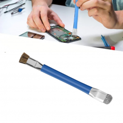 El BS-02 es un cepillo de limpieza antiestático de doble cabezal (2 en 1) diseñado para usar en equipos electrónicos sensibles sin generar cargas electrostáticas que puedan dañar componentes. Está pensado para técnicos y reparadores de celulares, computadores, PCBs (tarjetas de circuito impreso) y otros dispositivos electrónicos.