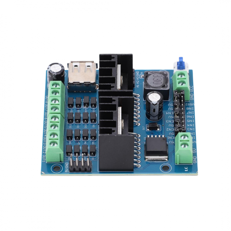 Es un módulo controlador de motor de 4 canales basado en el chip L298N, que permite controlar múltiples motores de forma simultánea. Funciona como un puente H (H-bridge), lo que le permite cambiar la dirección de giro de los motores y ajustar su velocidad usando señales de control (PWM). Es ampliamente usado en proyectos DIY, robótica y automatización industrial.