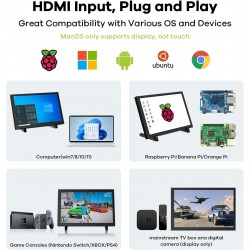 Una pantalla táctil capacitiva IPS de 10.1 pulgadas con entrada HDMI y resolución de 1280x800 es un monitor portátil que ofrece una visualización clara, colores vivos y ángulos de visión amplios, gracias a su tecnología IPS. Está diseñada para ser compatible con diversos dispositivos como Raspberry Pi 5/4/3B+, Xbox, PS4, Windows 7/8/10 e incluso otros equipos con salida HDMI, convirtiéndose en una opción versátil para proyectos electrónicos, juegos, multimedia y aplicaciones de escritorio. Su pantalla táctil capacitiva permite una interacción fluida y precisa, similar a la de una tablet, lo que facilita el control directo sin necesidad de teclado o ratón en muchas aplicaciones.