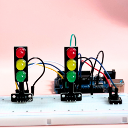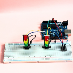 El Semáforo Peatonal con Botón de Cruce es un proyecto educativo basado en Arduino que simula el funcionamiento real de un sistema de control de tráfico para vehículos y peatones. El sistema permite que un peatón solicite el cruce mediante un botón pulsador, activando una secuencia automática de luces que detiene el tráfico vehicular y habilita el paso seguro.